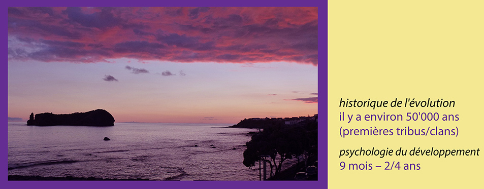 Les enfants de cet âge sont pleins d'amour et d'espoir, sans aucun préjugé, et vivent dans leur propre monde, qui a des caractéristiques magiques, car leur peluche empaillée est vivante. Ils croient aux contes de fées et aux miracles, ce qui leur permet de se transformer en ce qu'ils souhaitent. Leur existence est marquée par des sentiments forts : le désir d'exister et le désespoir d'exister sont parfois à un cheveu l'un de l'autre et peuvent changer en quelques secondes. Le manque ou les punitions déclenchent une frustration intense. Un regard aimant, un sourire ou un jeu sont source de grande joie. Ils sont maîtres de l'exploration et saisis par l'instant. Pour chacun de leurs pas dans le monde nouveau et inconnu, ils ont besoin d'un lieu de retraite sûr : ils ont besoin de se sentir en sécurité dans leur famille, leur groupe ou leur tribu. Cette sécurité et cette solidarité vécues dès la petite enfance constituent la base de la confiance dans la vie.